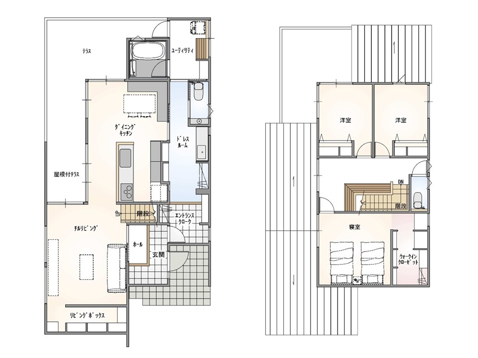 基礎断熱工法で水廻り設備、床材はハイグレード仕様。