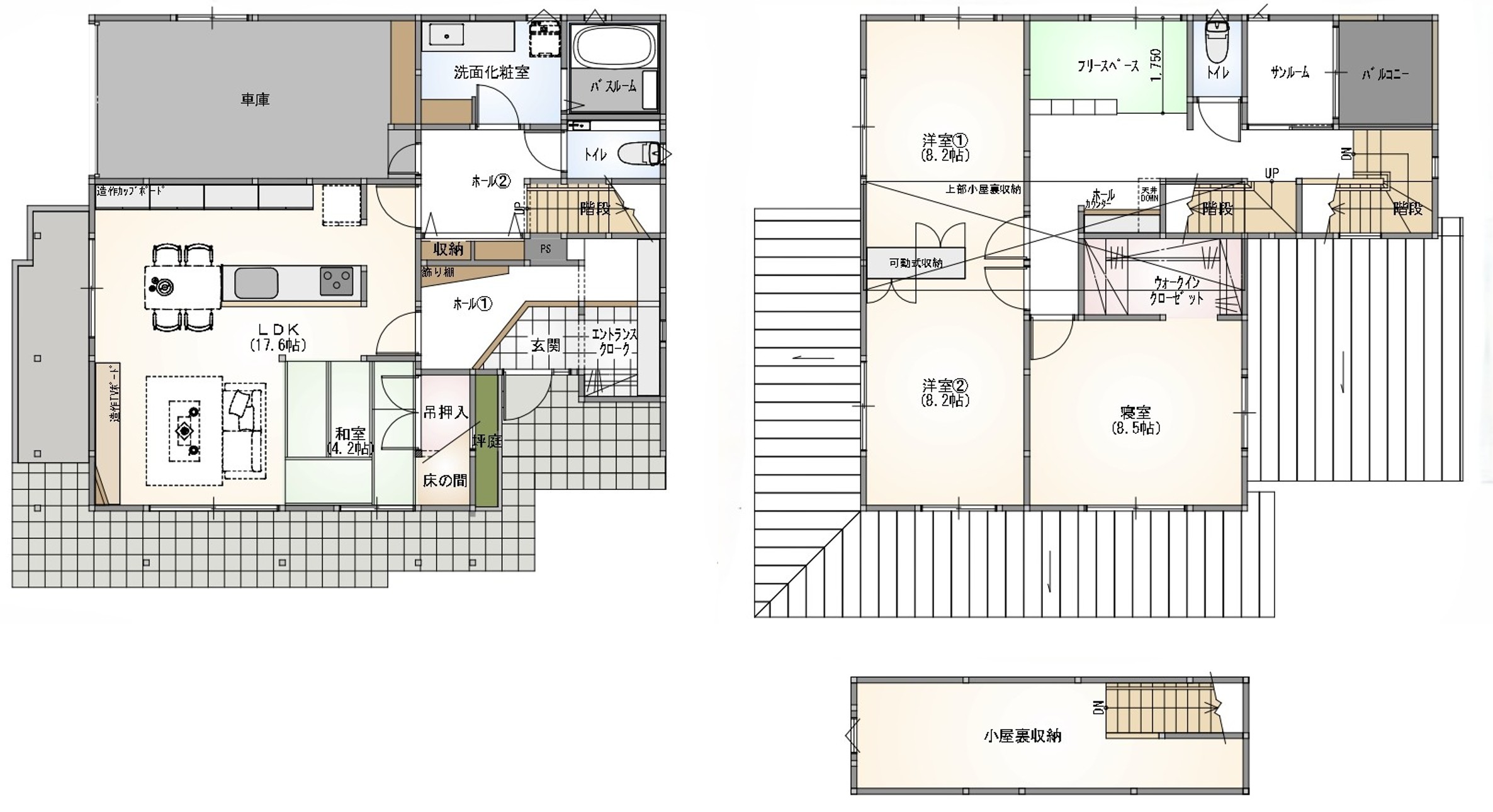 またフリースペースは収納やワークスペース、趣味のお部屋などにも◎